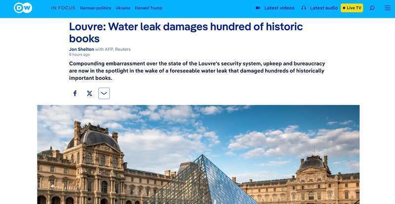 根据艺术史学家迪迪埃·里克纳披露的情况,卢浮宫内部的供暖系统预计从明年开始进行维修和更换。然而,11月下旬的某一天,暖气管道上的一个阀门被错误开启,水从天花板上方渗入埃及文物部门的图书室,导致300至400件藏品被浸湿。
